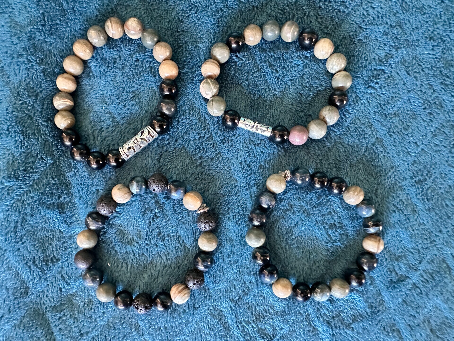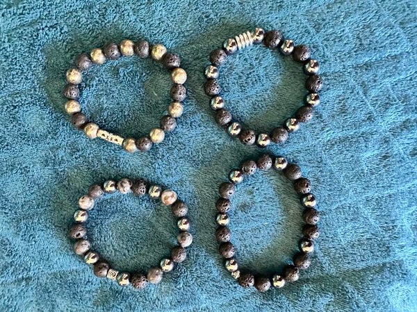 jaspe feuilles d'argent&pierres de lave & oeil de faucon